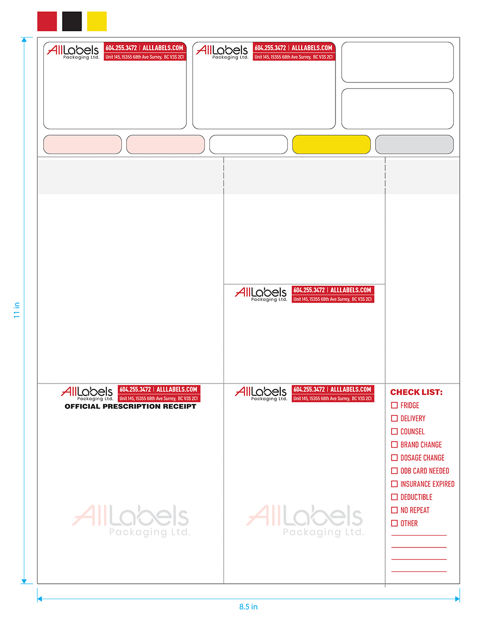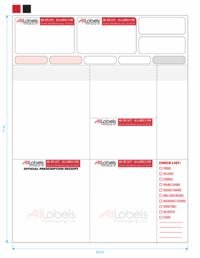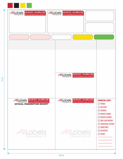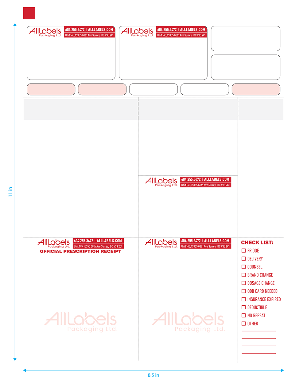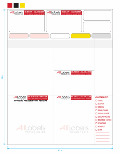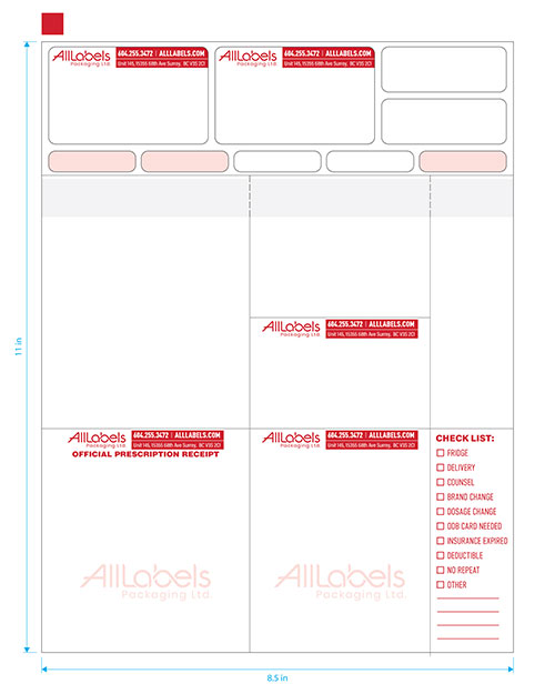 AllLabels produces high-quality pharmacy labels in Surrey, British Columbia, serving pharmacies across Vancouver, the Lower Mainland, and Canada. We manufacture sheet and roll pharmacy labels designed for accuracy, clarity, and reliable performance with common pharmacy software and printing systems.